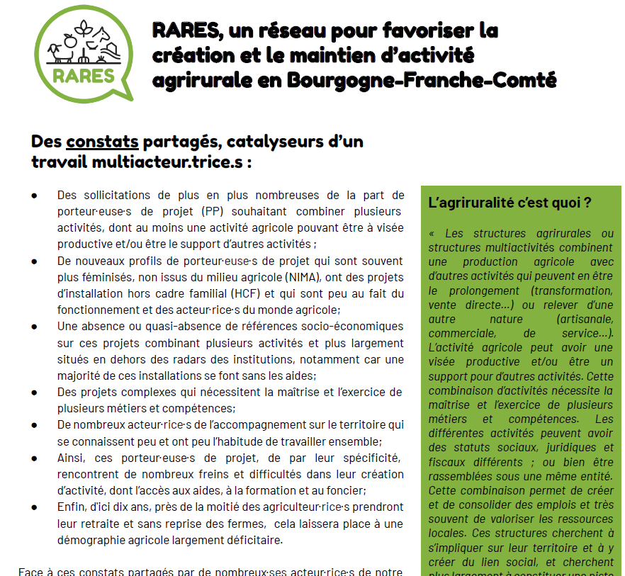 RARES : Accompagner à la création d'activités agri-rurales innovante en Bourgogne Franche-Comté !