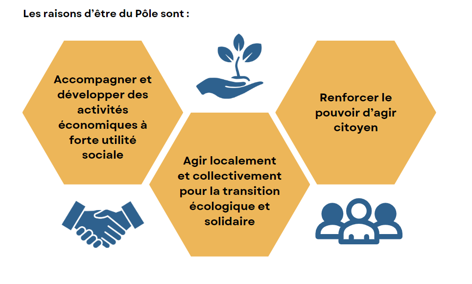 Dans le préambule de ses statuts révisés en juin 2023, le Pôle a inclut la Déclaration d’Engagement de l’ESS « Pour une République sociale et solidaire : nos raisons d’agir » d’ESS France. Celle-ci précise que : « La raison d’agir de l’économie sociale et solidaire est d’orienter le progrès, dans toutes ses dimensions, à la fois sociale, économique, démocratique, citoyenne et écologique. L’ESS s’efforce d’organiser les mutations des modes de production et de consommation imposées par l’urgence écologique et sociale en développant le pouvoir d’agir par l’engagement et le pouvoir de vivre du plus grand nombre. Elle se fonde sur la liberté, l’égalité, la solidarité, la responsabilité, la démocratie et la raison. L’ESS est la norme souhaitable de l’économie, qui démontre par la preuve que la prospérité peut être inclusive et atteinte en respectant les limites planétaires avec l’implication de toutes et tous ».